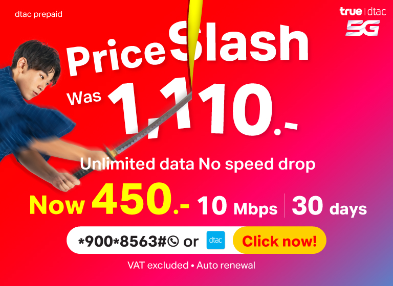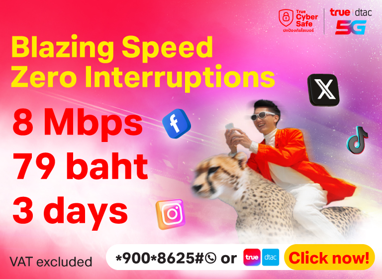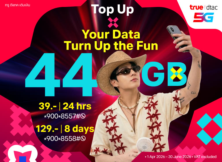 All types of dtac Prepaid SIMs that suit our customers; Unlimited Internet, No Speed Drop, Voice Calls, No Internet Leaks, SIMs for use in Myanmar and Cambodia. Plus Tourist SIM that provides internet throughout your trip in Thailand.