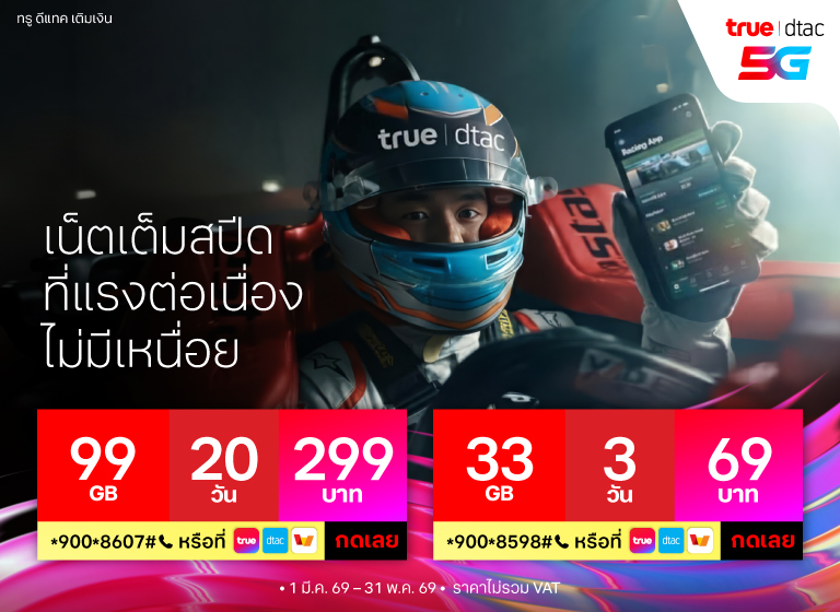- ค่าบริการยังไม่รวมภาษีมูลค่าเพิ่ม - โปรเสริมนี้ต่ออายุอัตโนมัติหรือจนกว่าจะยกเลิก - ใช้งานอินเทอร์เน็ตที่ความเร็วสูงสุด 1Mbps - บริษัทสงวนสิทธิในการจัดการบริหารเครือข่ายตามความเหมาะสมเพื่อรักษามาตรฐานคุณภาพของบริการและเพื่อช่วยให้ผู้ใช้บริการโดยรวมสามารถใช้งานได้อย่างมีประสิทธิภาพ เช่นจำกัดหรือลดความเร็วหรือดำเนินการใดๆในการรับส่งข้อมูลต่างๆ การใช้งาน Bit Torrent, การดาวน์โหลด และ/หรืออัพโหลดไฟล์ขนาดใหญ่, หรือการใช้งานใดที่มีการรับส่งข้อมูลในปริมาณมากอย่างต่อเนื่องหรือที่มีผลต่อการใช้บริการหรือเกิดความไม่เป็นธรรมก่อหรืออาจะก่อให้เกิดความเสียหายต่อผู้ใช้บริการอื่นและ/หรือต่อเครือข่ายหรือการให้บริการโดยรวมของบริษัท ทั้งนี้ การลดความเร็วอาจลดต่ำกว่าที่ระบุในแพ็กเกจตามแต่ลักษณะการใช้งาน พื้นที่ให้บริการและอุปกรณ์ที่รองรับ - ดูรายละเอียดเพิ่มเติมได้ที่ www.dtac.co.th - บริษัทฯ ขอสงวนสิทธิ์ในการเปลี่ยนแปลงการเสนอขายได้ตามสมควร