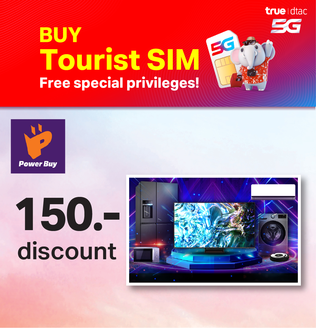 - Get 150 Baht cash coupon for purchases of mobile phones, tablets, games, gadgets (smartwatches, headphones, speakers, action cameras), computers, printers, data storage, and IT accessories. Valid only for full cash or full credit card payments (installment payments are excluded). Minimum purchase of 10,000 Baht per receipt.