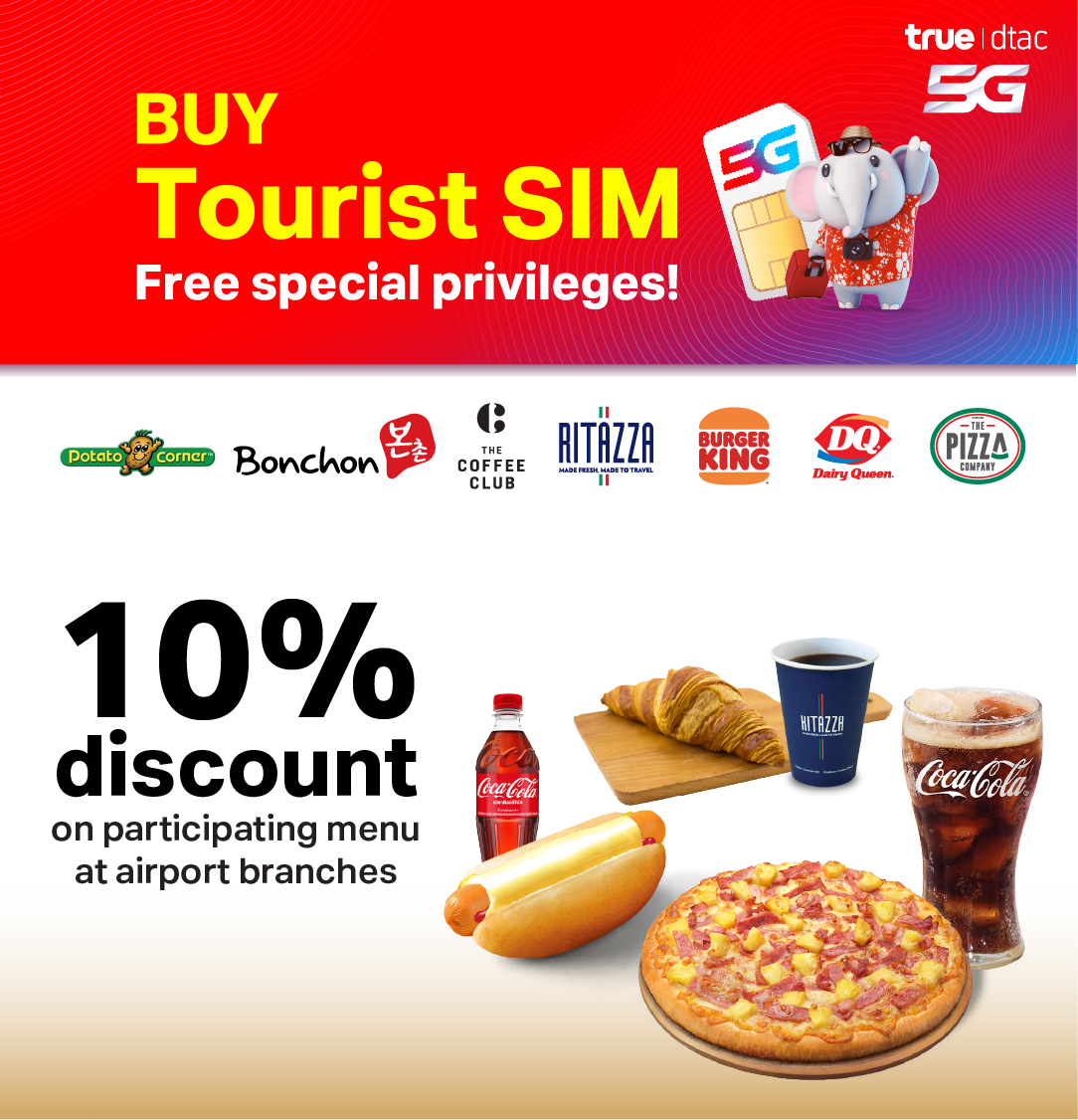 10% discount at participating airport locations of Burger King, Dairy Queen, Cafe Ritazza, The Pizza Company, The Coffee Club, Bonchon and Potato Corner