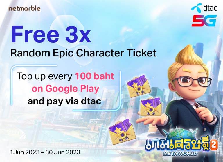 - Top Up Diamond pack Every 100 Baht top-up via dtac number on Google Play Get Free! Epic Character Random Cards x3
