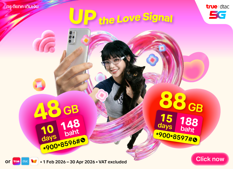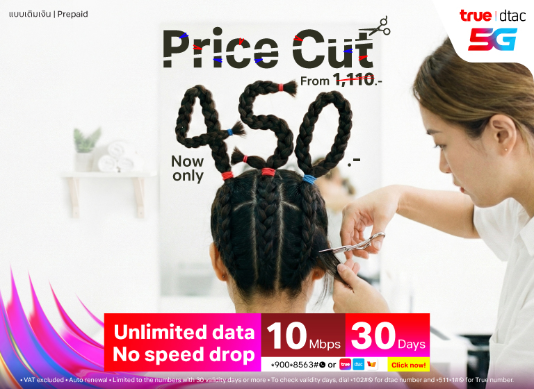 All types of dtac Prepaid SIMs that suit our customers; Unlimited Internet, No Speed Drop, Voice Calls, No Internet Leaks, SIMs for use in Myanmar and Cambodia. Plus Tourist SIM that provides internet throughout your trip in Thailand.