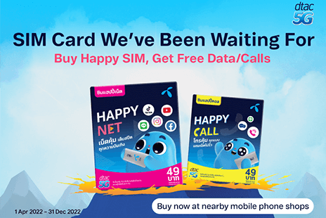 All types of dtac Prepaid SIMs that suit our customers; Unlimited Internet, No Speed Drop, Voice Calls, No Internet Leaks, SIMs for use in Myanmar and Cambodia. Plus Tourist SIM that provides internet throughout your trip in Thailand.