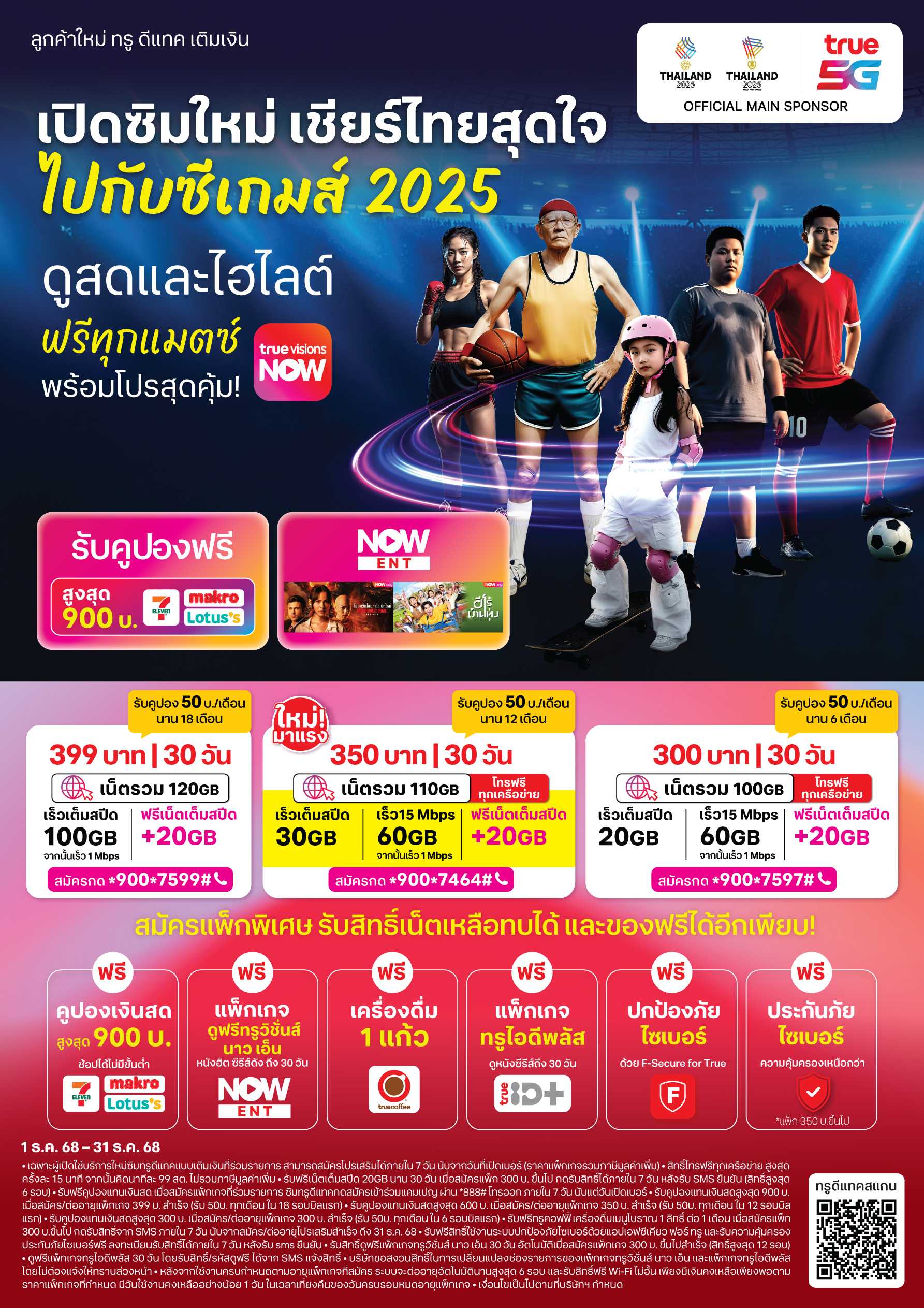 - รับคูปองแทนเงินสดสูงสุด 600 บ. เมื่อสมัคร/ต่ออายุแพ็กเกจ 350 บ. สำเร็จ (รับ 50บ. ทุกเดือน ใน 12 รอบบิลแรก)