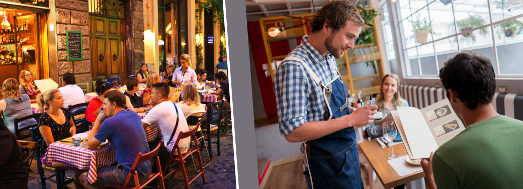 หากเลือกร้านแบบ Sit-down Restaurant หรือร้านแบบมีพนักงานเสิร์ฟให้บริการก็จะมีขั้นตอนเพิ่มขึ้นมาอีกนิดหน่อยค่ะ