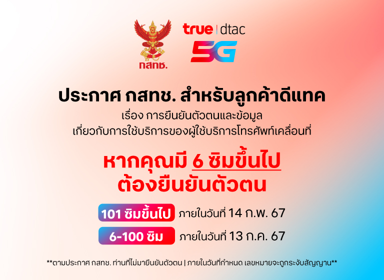 หากคุณมี 6 ซิมขึ้นไป ต้องยืนยันตัวตนแสดง QR Code ด้านล่างหรือกด *555*16*เลขบัตรประชาชน#โทรออก